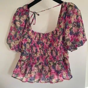 ASTR The Label Women's Pink and Purple Floral Blouse size LargeNWOT