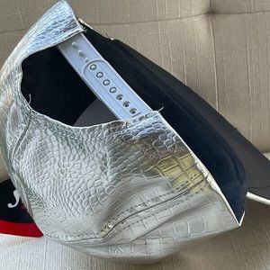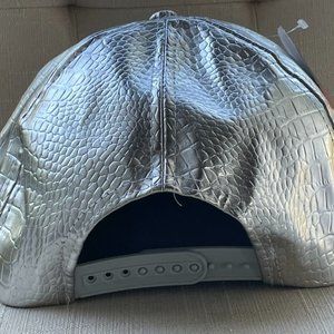 Men Hat Fashion Sport Cap Faux Leather Silver Tone Hat adjsutable