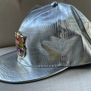 Men Hat Fashion Sport Cap Faux Leather Silver Tone Hat adjustable