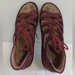 Naot Ghillie Platform wedge strappy sandals Burgundy lace-up size 39