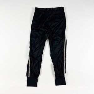 3.1 Phillip Lim Satin Beaded Tuxedo Stripe Trim Ankle Cropped Jogger Pants Black