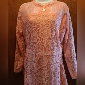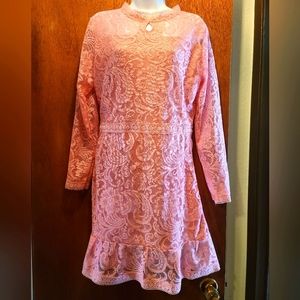 Pretty in Pink lace lined handmade long sleeve stretch lace dress szM
