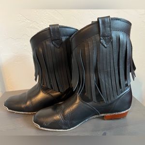 Square Dancing Boots - All Leather with Fringe, Black, 6 1/2