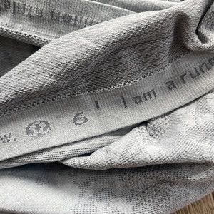 Lululemon swiftly tech long sleeve in two-toned grey, in good used condition. A couple small pulls on fabric. Size 6.