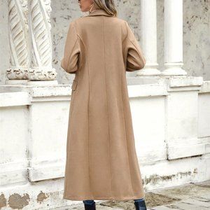 Khaki Casual Womens Lapel Neck Double Breasted Overcoat