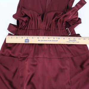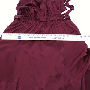 A.L.C. Silk Verena Plunging V-Neck Open Back Burgundy Satin Midi Dress