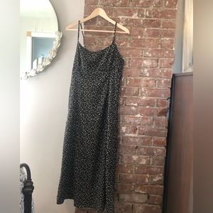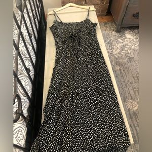 This is a very pretty black with small white flowers sun dress designed by Shein …is it NWT .. size L , ties in back for aline look .. thin spaghetti adjustable straps .. scoop neckline with seam under chest .. .. simple & comfy …