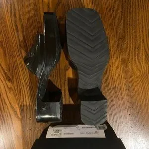 A playful twist on an essential style, the slide sandal is presented in black rubber for the Pre-Fall 2020 collection. Recalling '90s style, a chunky heel and embossed logo add a retro appeal.