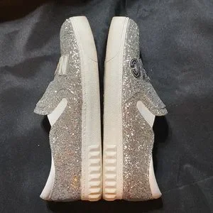 Lots of sparkle. Not basic excellent shape. See photos soles a bit dirty they are white womenswear size 8