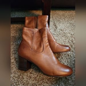For sale is a pair of Frye ankle boots. Color is cognac, size 9 in a beauty soft leather. Worn only once for a few hours. No box