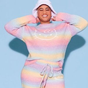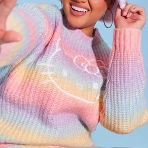 HELLO KITTY X FOREVER 21 Pastel Rainbow Gradient Wash Chunky Knit Sweater