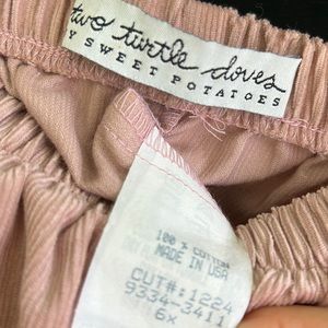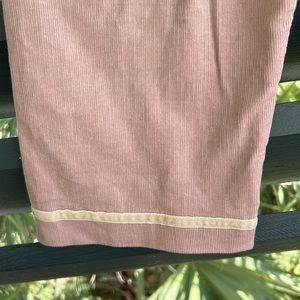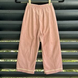 Mauve Pink, Elastic Waist , Corduroy, Pull -Style Pants Trimmed in Cream Velvet Ribbon.