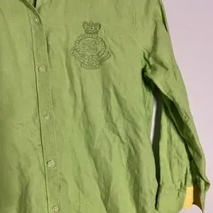 Lauren Ralph Lauren 100% linen logo button down shirt, flip sleeve, small