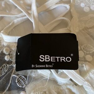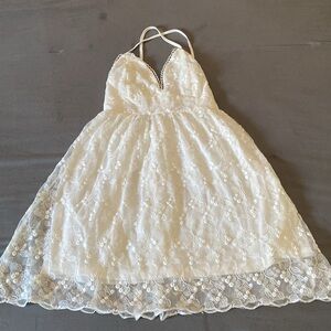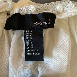SBETRO by Suzanne Betro Floral Embroidered Pom Pom Lace Up Backless V-neck Dress