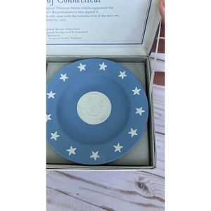 This exquisite Wedgwood Jasperware plate belongs to the State Seal Series and displays the Connecticut and Sherman.