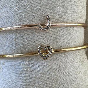 Bracelet Letter J and Heart Gold Tone Rose Gold Tone Fashion Jewelry set of 2