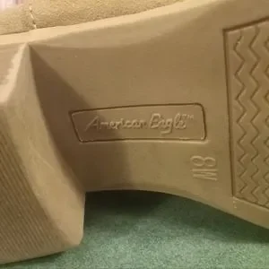 American Eagle brown suede calf boots size 8w. Rounded toe, color has scuffed off a little around the heel but hardly noticeable.