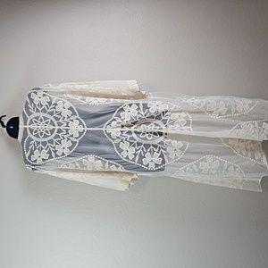 Indigo Poppy | Women's 3/4 Bell Sleeves Lace Sheer Kimono Topper Sz 2x