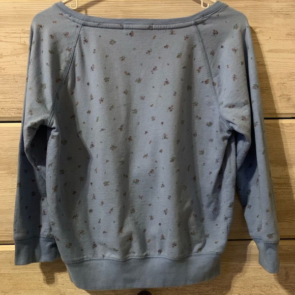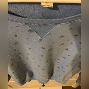 Forever 21 Boutique long sleeved top; sweatshirt material; powered blue w tiny flowers; S; can upload more pics or videos; no defects