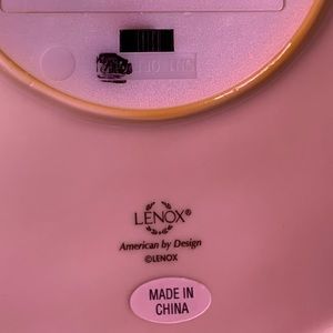Lenox porcelain Christmas tree with lights. It has on/off and timer function. Uses 3 AAA batteries. It is 10 inches tall and 7 inches wide at the bottom.