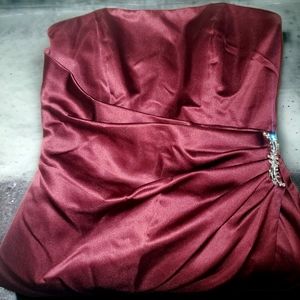 David's Bridal Sleeveless Cranberry Gown w Brooch