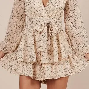 Showpo | On Rotation Playsuit Romper Dress with Tie Polka Dots Brown Australia