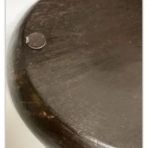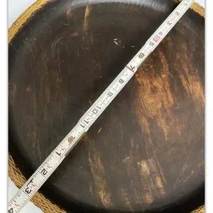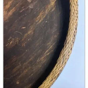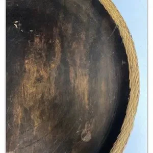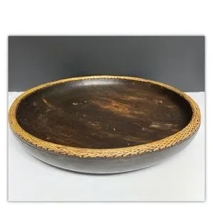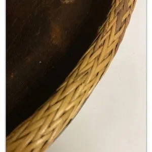 Vintage Hand Carved Lombok Indonesian 15”D Solid Wood Bowl with Rattan Basket Rim.