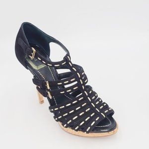 Dior Black Suede Stitched ANTICA Gladiator Caged Strappy Sandals Size 37.5