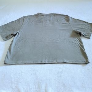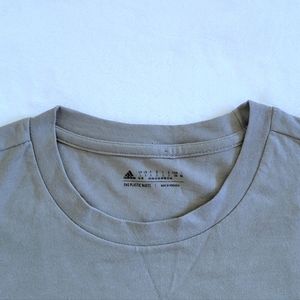 Color of tee👕 is "silver pebble" which is a taupe-grey-olive with "Adidas", "New York City"🏙 surrounding a peace dove🕊 on the front chest