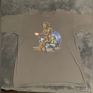 This is a Disney Star Wars and Guardians of The Galaxy Mash Up Shirt, featuring Rocket and Groot as Han Solo and Chewbacca. The shirt is in good condition with no noticeable marks, cuts, or holes - but photos are provided so you can also verify. Please ask questions if you have any, and I will be happy to answer.