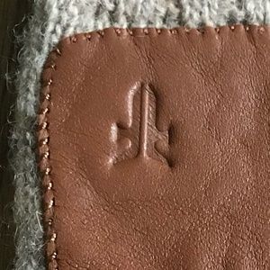 NWT Frye Leather Patch Long Knit Wool Gloves Logo Cognac Brown Tan S/M