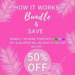 Bundle any 1 or more items with a green or purple dot & save 50% off - simple bundle the item/s you want and your offer will be sent back to you! Thanks 😊