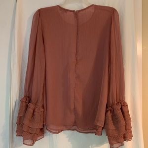 Stellah dusty rose crinkle gauze top with long ruffled bell sleeves