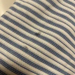 Small Stain on sleeve & hole on the armpit right at the seam -can easily be sewn.