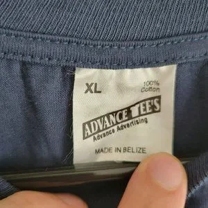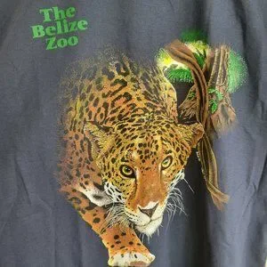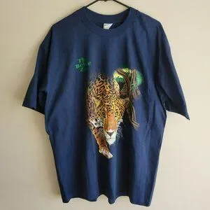 Offered here is a Vintage Advance Tees Single Stitch T-Shirt - Size XL - Navy Blue - Belize Zoo with Prowling Cheetah in Jungle - 100% Cotton - Made in Belize