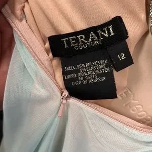 TERANI COUTURE deep V-Neck crystal embellished cutout back long gown