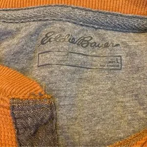 Eddie Bauer Mens L Burnt Orange Mustard Waffle knit 1/4 Button Long Sleeve Shirt
