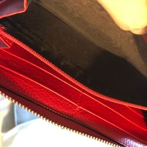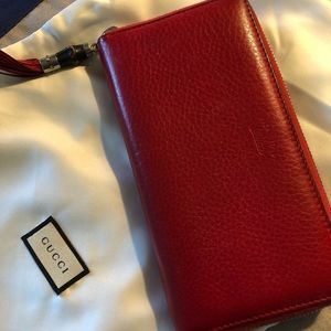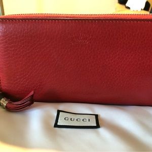 Gucci Red Leather Bamboo Zipper Long Zippy Wallet with dustbag and box
