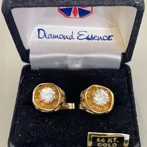 Diamond Essence 14k solid cufflinks simulated Diamond solitaire