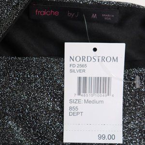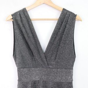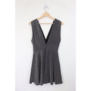 NWT Fraiche by J Metallic Shimmer Deep V-Neck Fit & Flare Minidress Silver Black