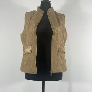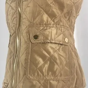 Louise Paris, Medium, Quilted, Tan Vest, Gold accents, winter, fall