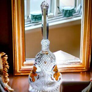 Description: Vintage Crystal Teddy Bear Decorative Bell cut crystal with hand painted Teddy Bear.