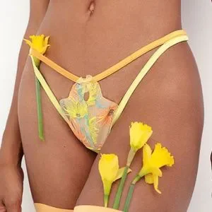 Exquisite thong features floral embroidery that evokes lush water lilies in soft neons. Showcasing strappy cutouts and stretch satin in back.