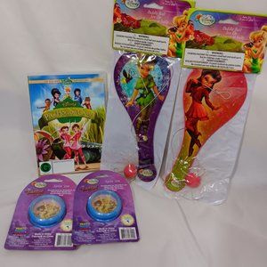 Disney Fairies Tinkerbell and Friends Bundle 2 Paddle Balls - 1 DVD - 2 Spin'em