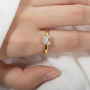 #Certified 1ct. t.w. Moissanite Diamond Emerald Cut Engagement Ring NEW