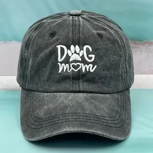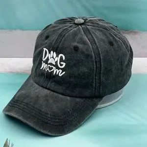 Vintage Washed "Dog Mom" Embroidered Baseball Cap