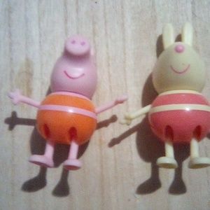 Two Peppa pig toys: mommy pig and mommy rabbit