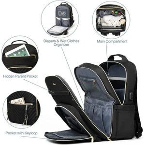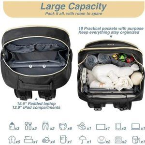 🧿Convenient & Thoughtful - Baby diaper bag features 15.6’’ padded laptop pocket & 12.9’’ iPad pocket in the main compartment, USB charging port, 2 built-in stroller straps, waterproof pocket, back anti-theft pocket, dual zippers for easy-access & closure even with one hand! Also we have added a luggage sleeve on the back so it can easily slide over a carry-on luggage while on the go.