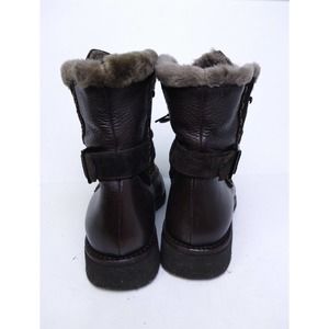 Bally Boots Womens Size 6 Makila Brown Leather Fur Lined Lace Up Winter Shoes