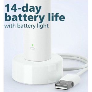 Long lasting 14 day battery life. Includes: 1 DailyClean 1100 handle, 1 SimplyClean brush head, 1 charger